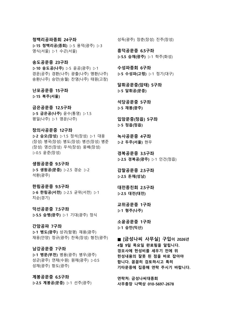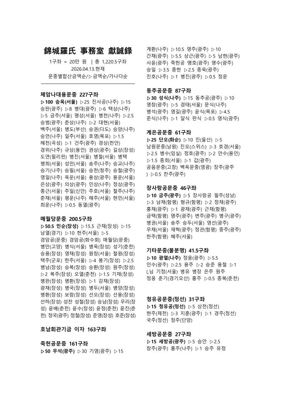 [확인] 금성나씨 사무실 헌성록 2026.04.13 현재